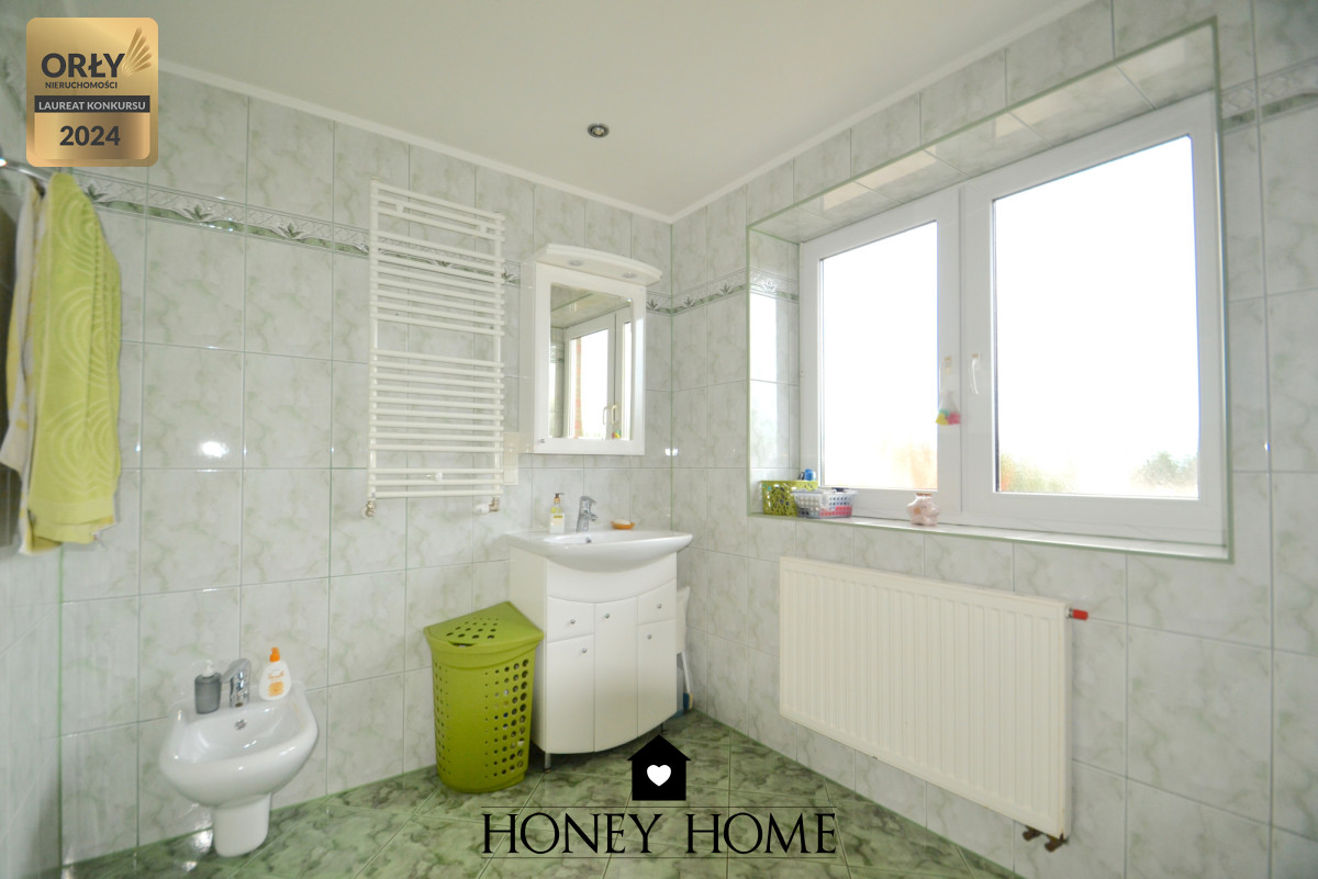 - Pierwsze Piętro: Przestronny salon z wyjściem na taras i ogród, osobna kuchnia ze spiżarnią, łazienka gościnna.