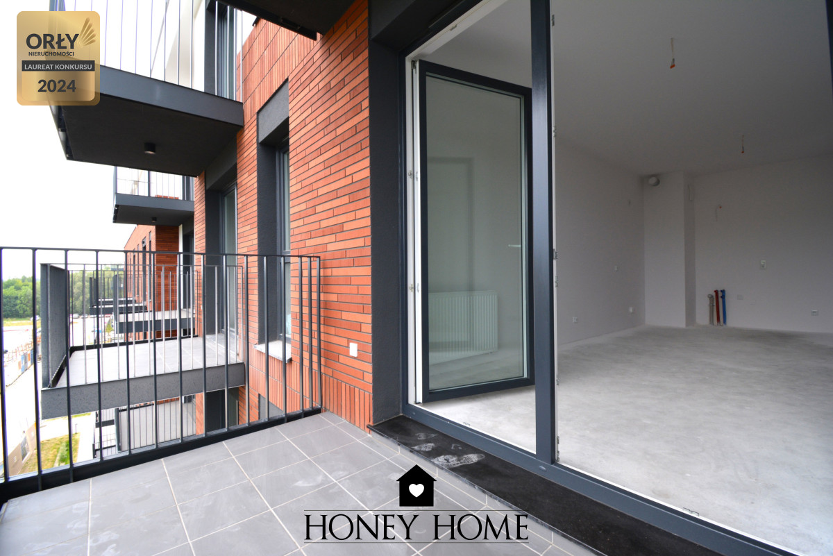 - Przestronne balkony, trzyszybowe okna PCV, antywłamaniowe drzwi.