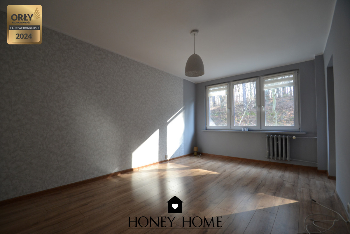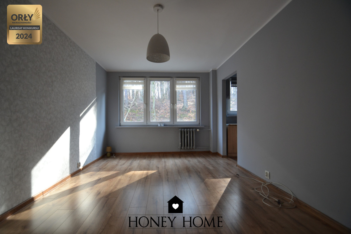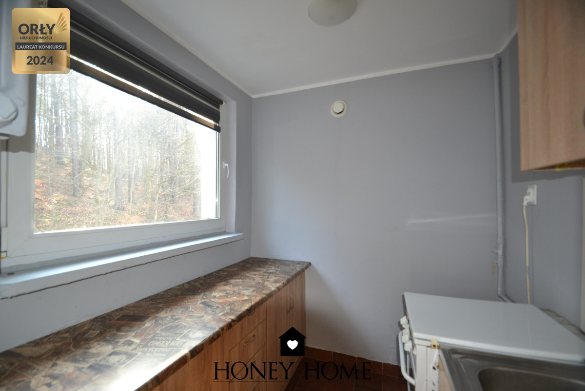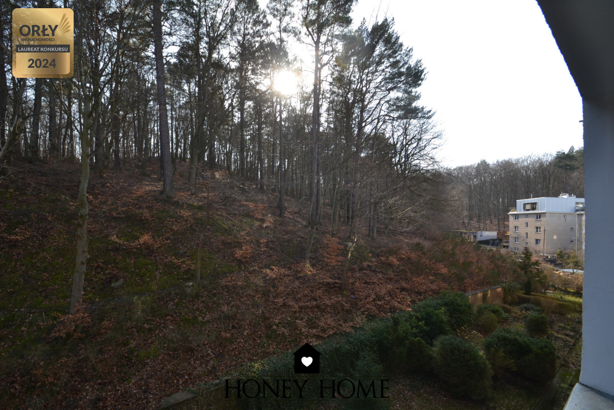 Urokliwe mieszkanie z ekspozycją okien jest południową . Za okien widok na las