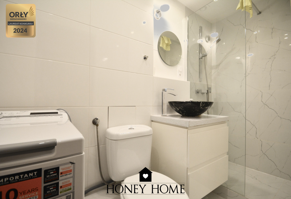 Mieszkanie jest wyposażone i umeblowane - w cenie pozostają m.in.: meble, pralka, zmywarka, lodówka, kuchenka, piekarnik, telewizor.