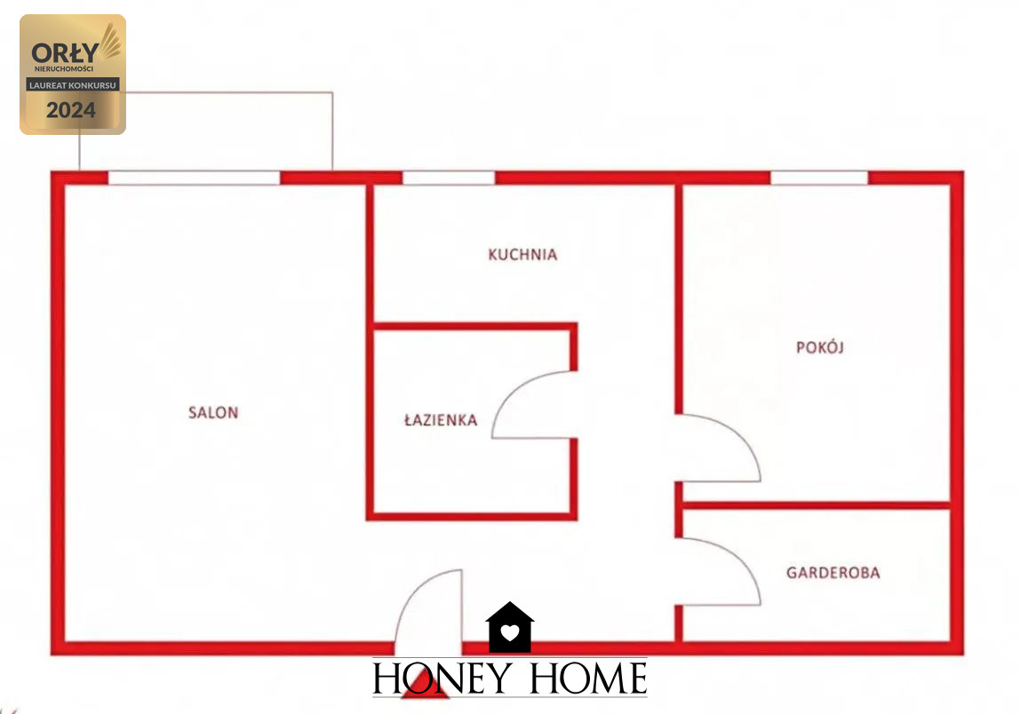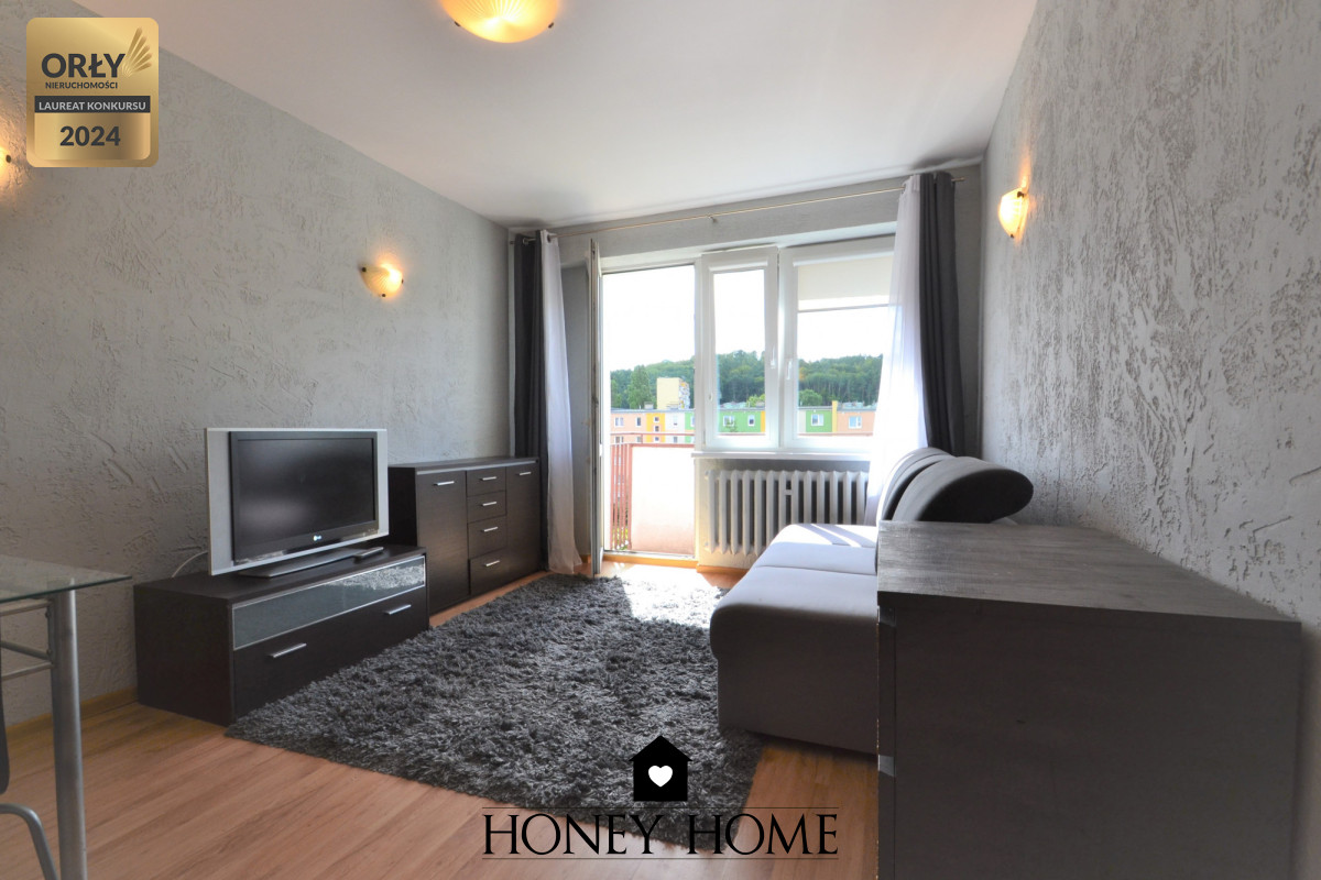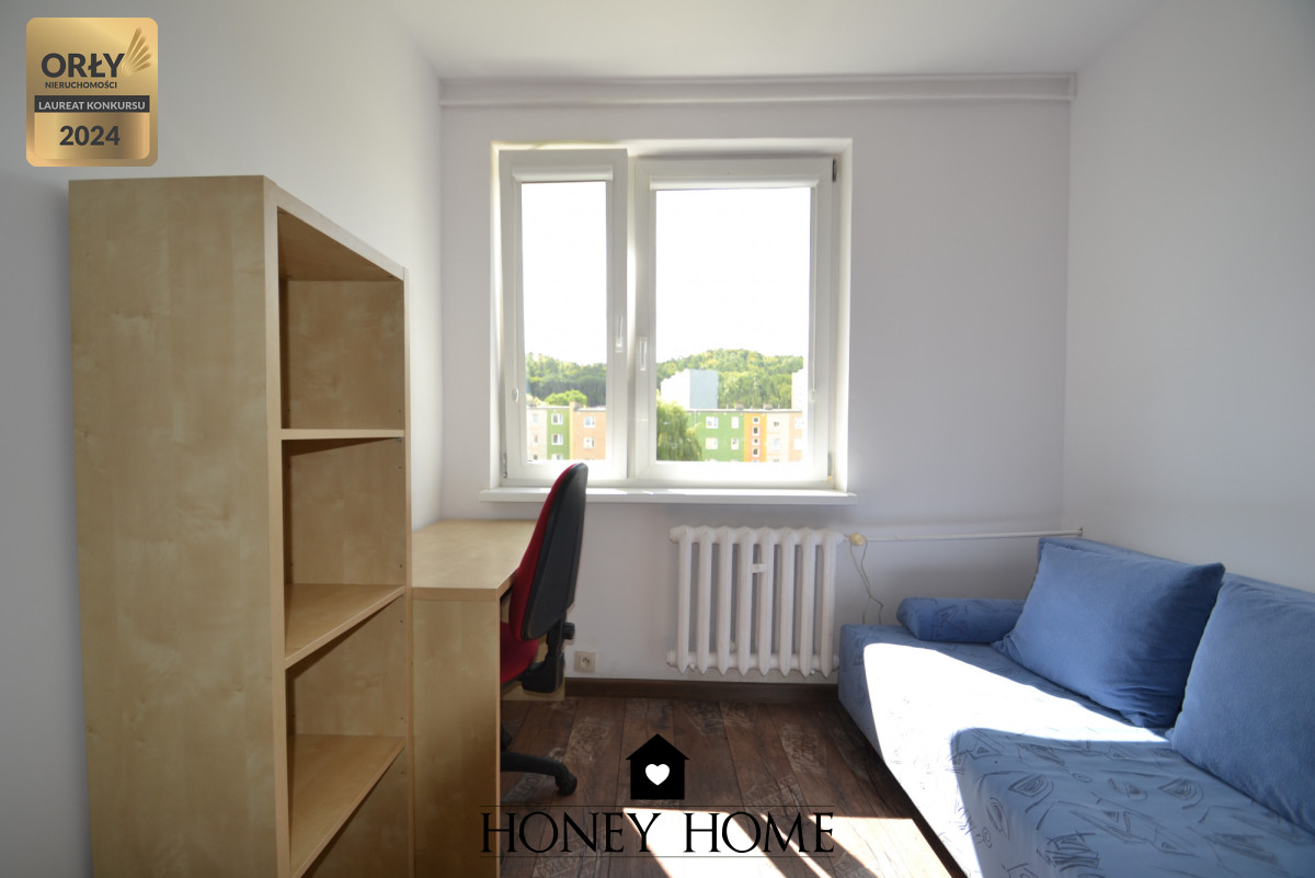 Jasne 2-pokojowe mieszkanie z oknami i balkonem wychodzącymi na stronę południową, położone na 4 piętrze czteropiętrowego budynku z lat 80-tych bez windy, składające się z: