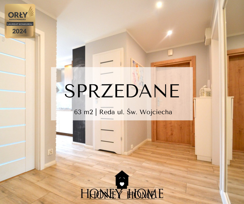 Na sprzedaż 3 pokojowe mieszkanie o powierzchni 63m2 mieszczące się na 2 piętrze, 3 piętrowego bloku z 1988 roku przy ul. Św. Wojciecha w Redzie