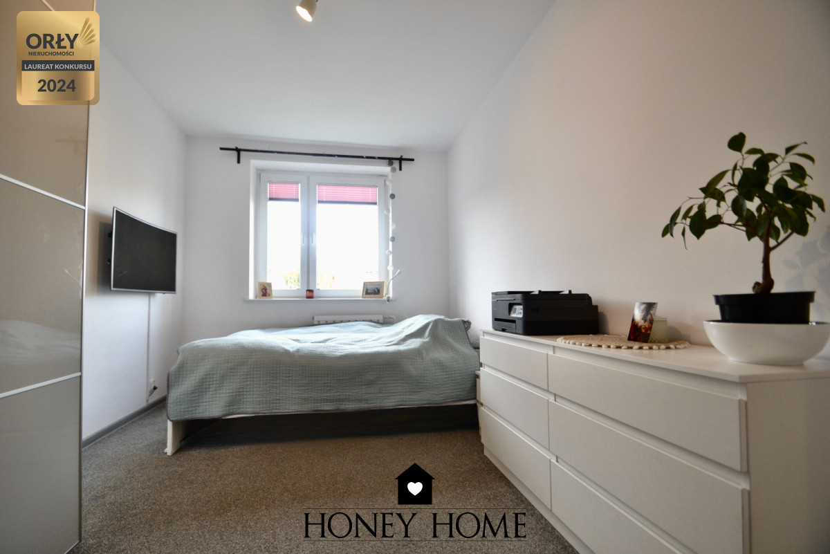• Jasne i przestronne wnętrza - korzystna ekspozycja zapewnia naturalne oświetlenie przez cały dzień (duży pokój od strony wschodniej, sypialnia i kuchnia od zachodniej).