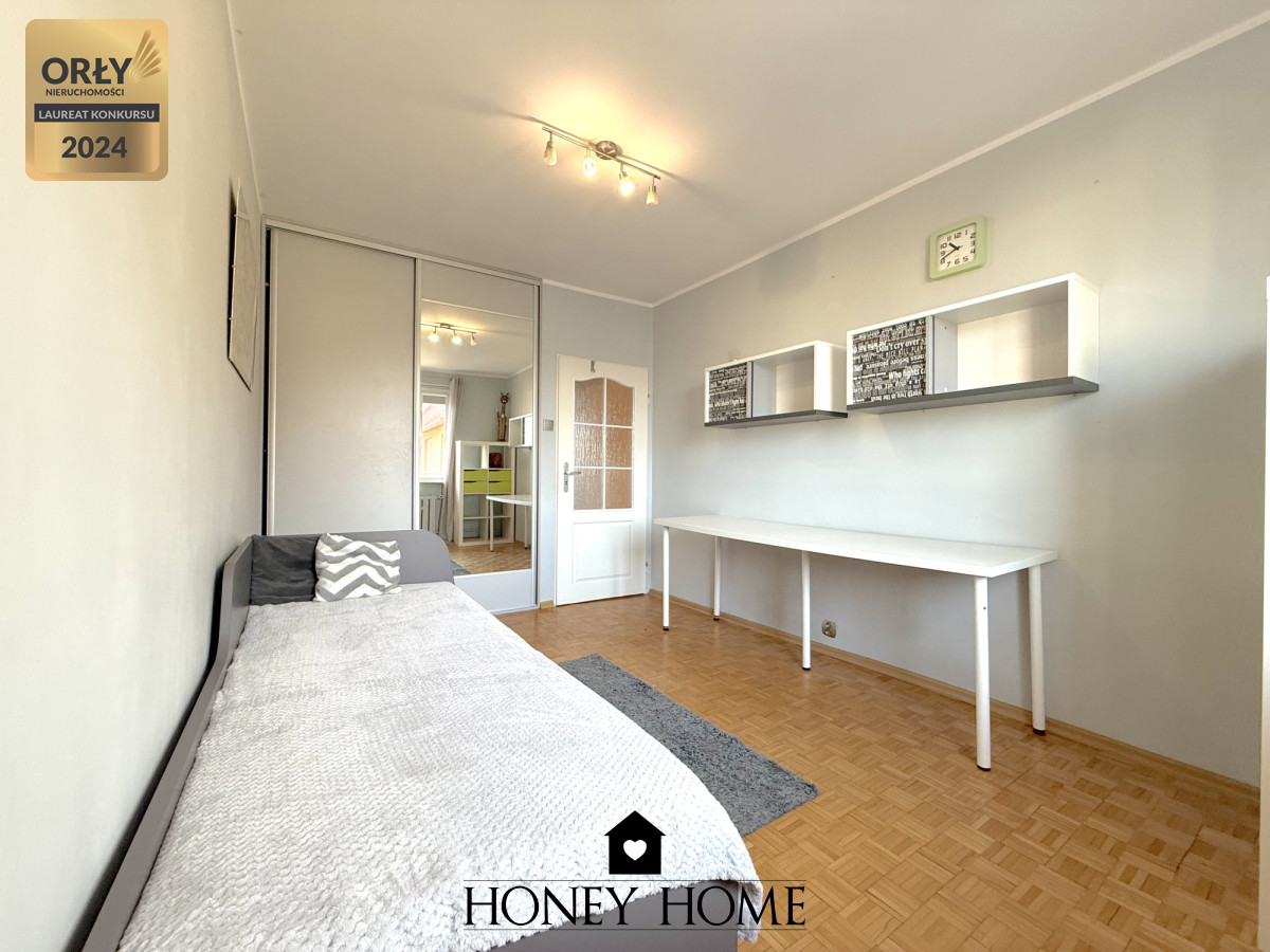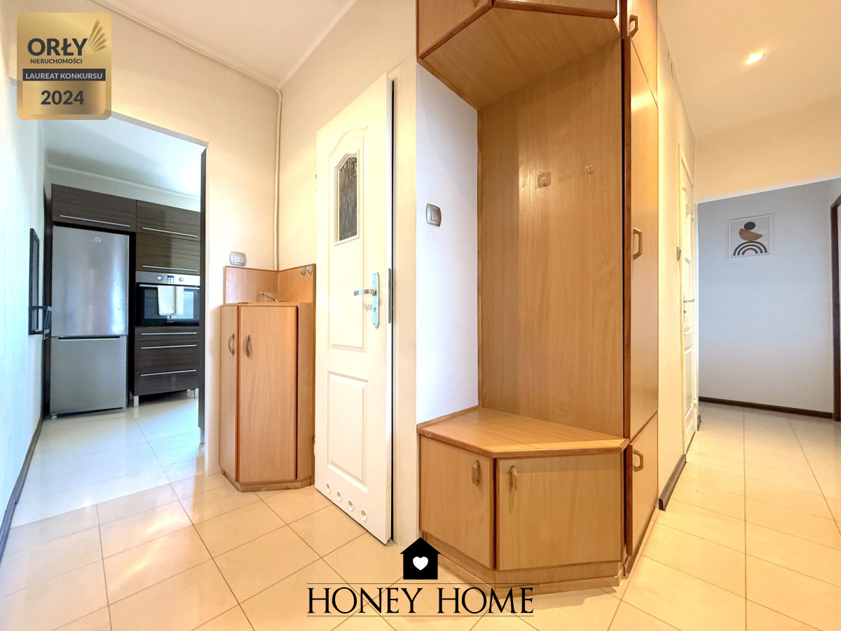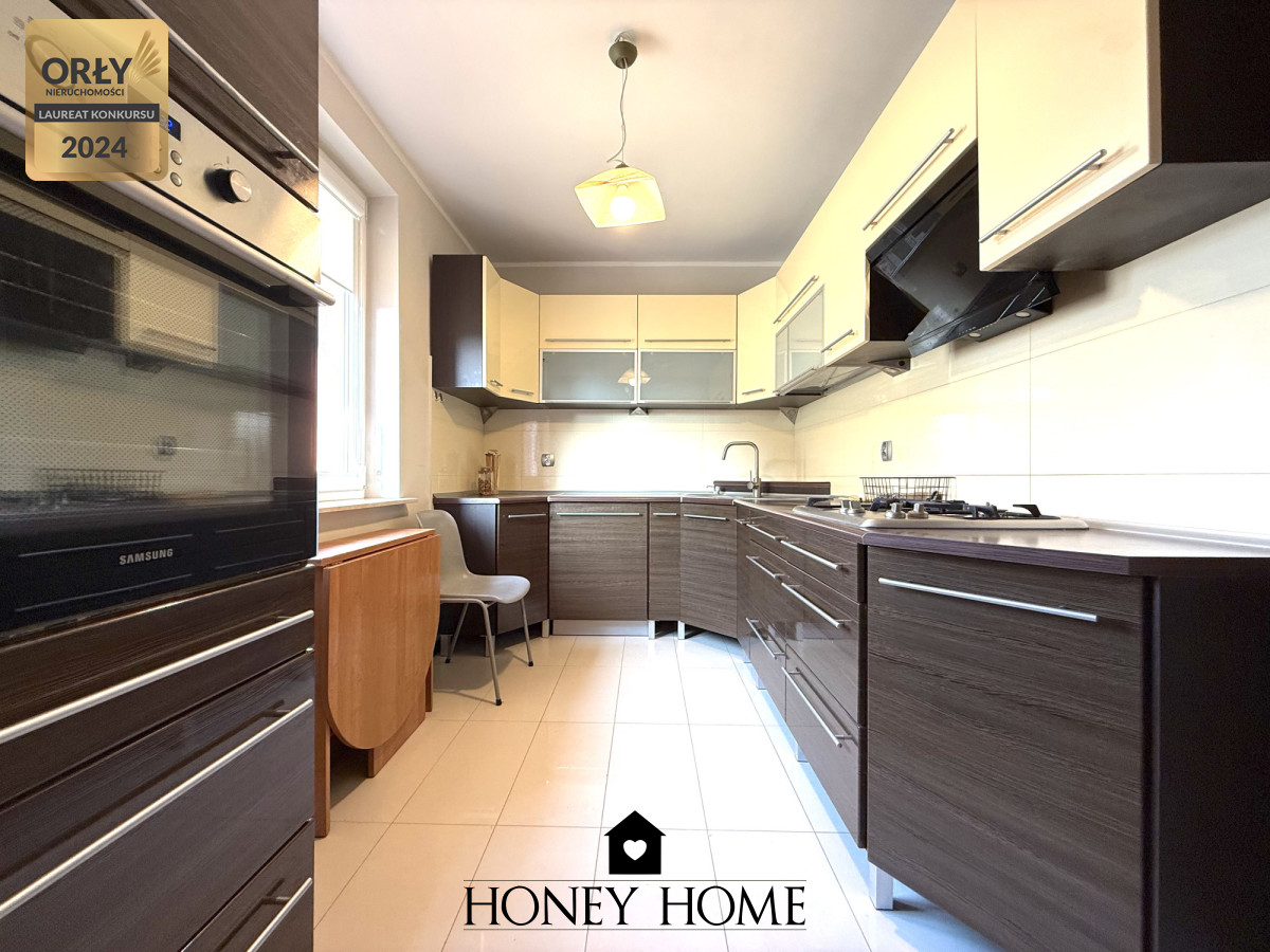 W cenie mieszkania pozostaje zabudowa kuchni wraz ze sprzętem AGD (płyta gazowa, piekarnik, zmywarka) oraz szafy w zabudowie typu komandor w przedpokoju i sypialniach. W pokojach na podłogach znajduje się parkiet, natomiast w kuchni i przedpokoju położony jest gres szkliwiony.