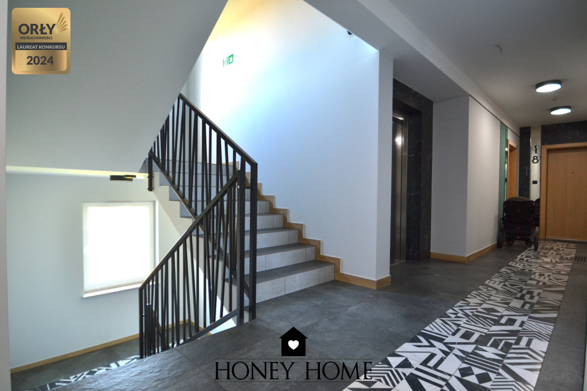 Inwestycja została zrealizowana przez renomowanego dewelopera i charakteryzuje się spójną architekturą oraz wysokim standardem wykończenia części wspólnych.