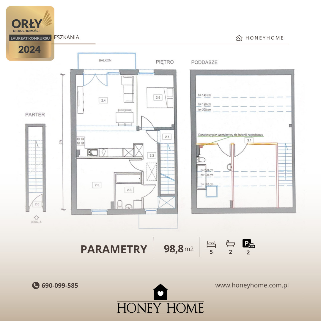 * powierzchnia całkowita: ok. 98,6 m²