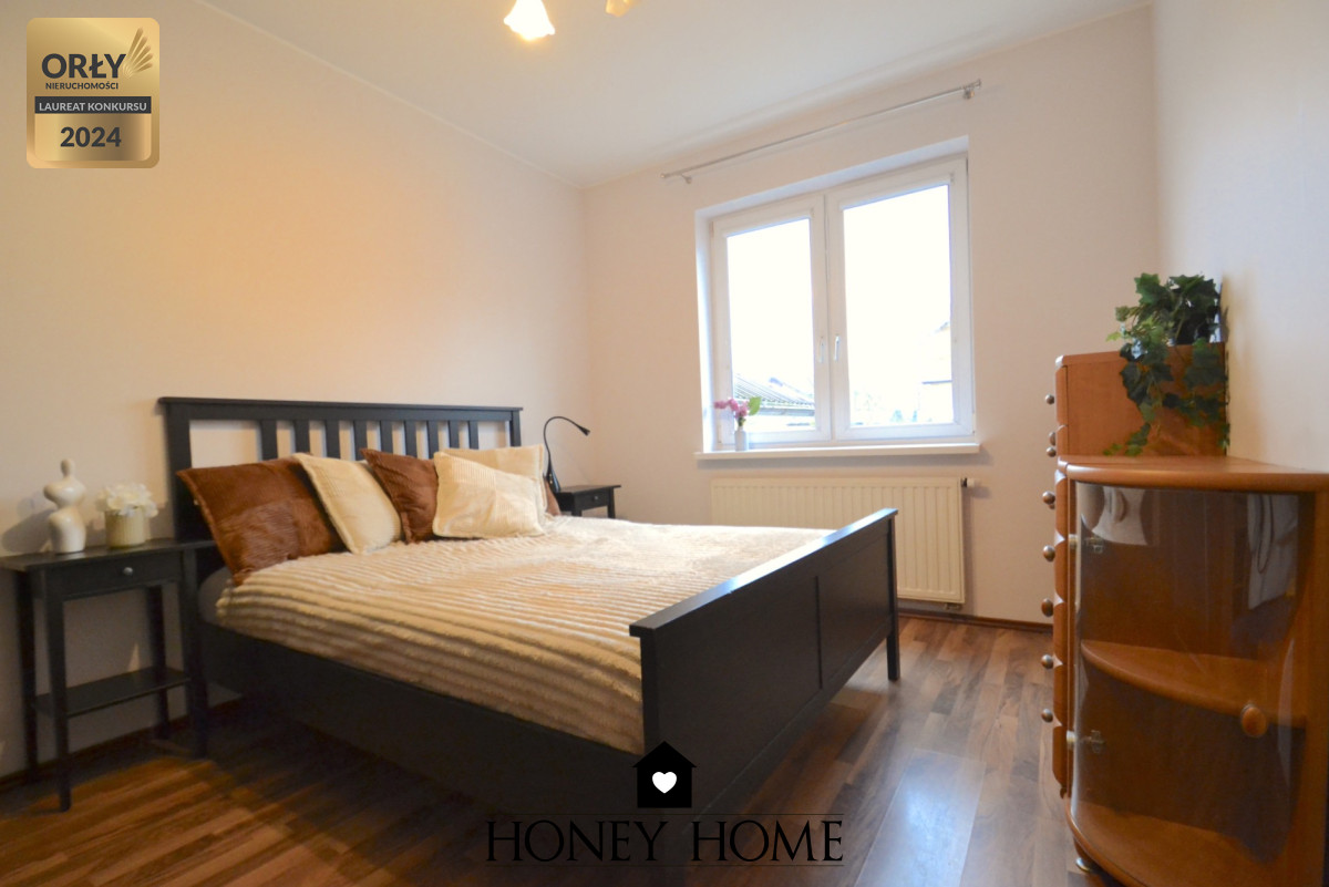 W sypialni znajduje się zabudowana szafa, a podstawowe meble w salonie mogą pozostać na życzenie kupującego.