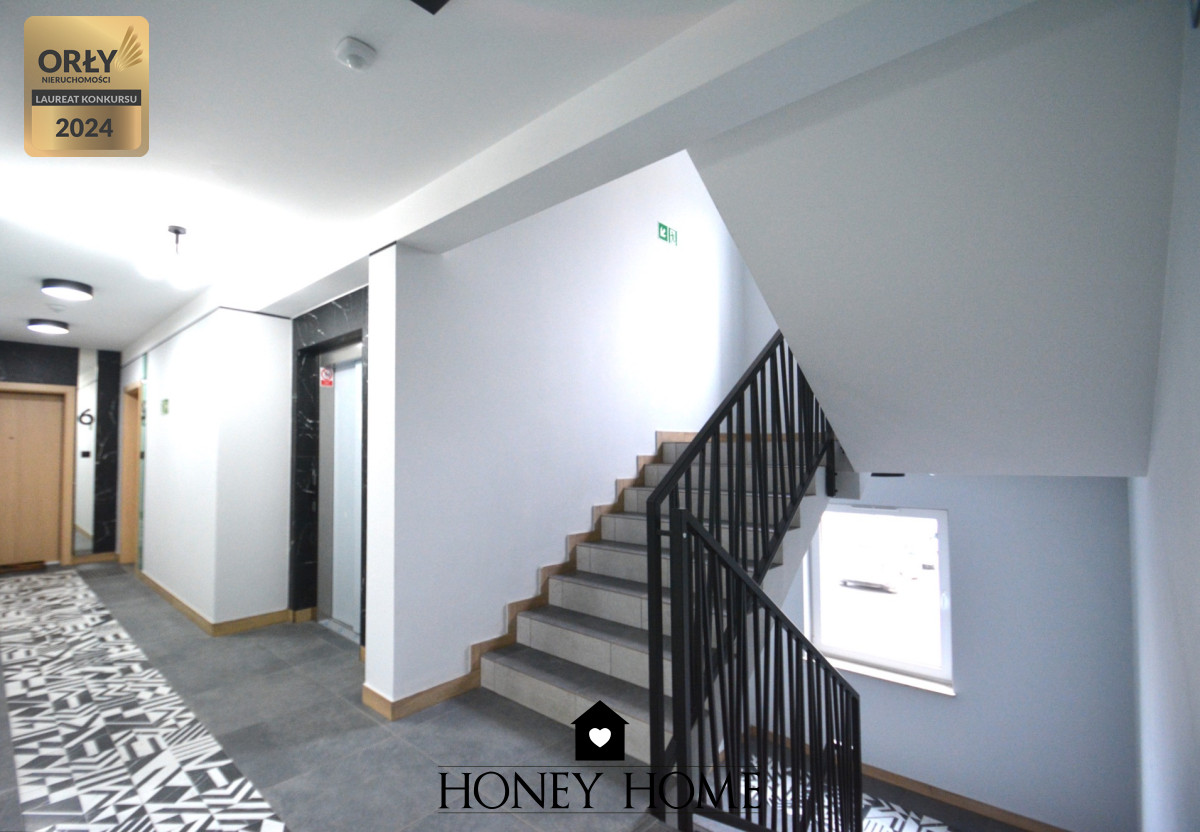 - Zadbana klatka schodowa, winda, monitoring oraz domofon zapewniają komfort i bezpieczeństwo mieszkańców.
