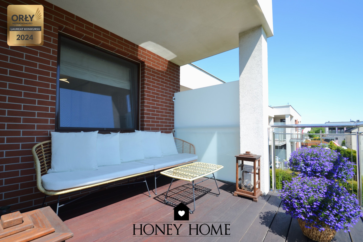 Dwustronny układ zapewnia świetne doświetlenie przez cały dzień, a duży balkon od strony południowo-zachodniej został starannie zagospodarowany - to idealne miejsce na odpoczynek.