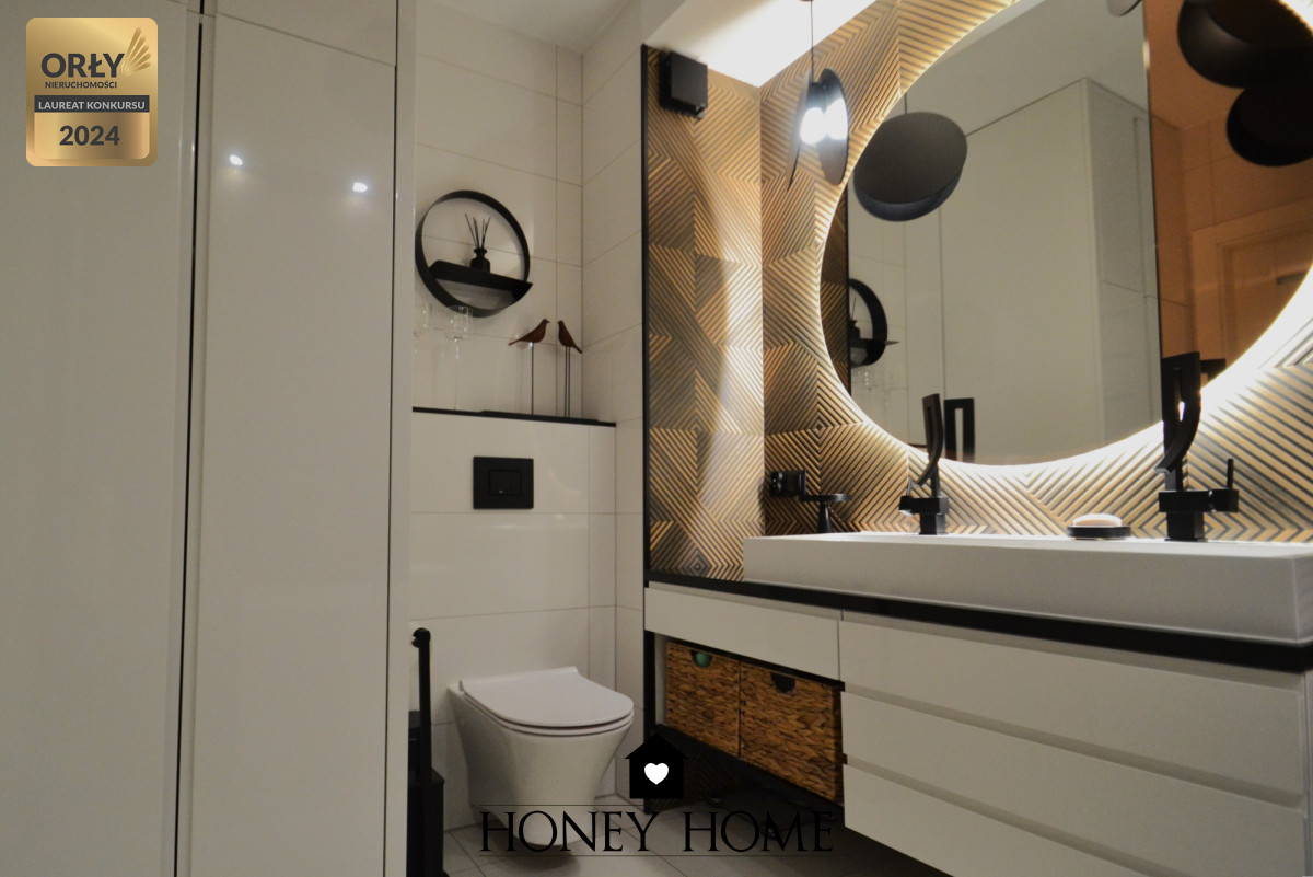 We wnętrzu zastosowano naturalne deski jesionowe, które wprowadzają ciepło i elegancję. Mieszkanie sprzedawane jest w pełni wyposażone - gotowe do wprowadzenia bez dodatkowych nakładów.