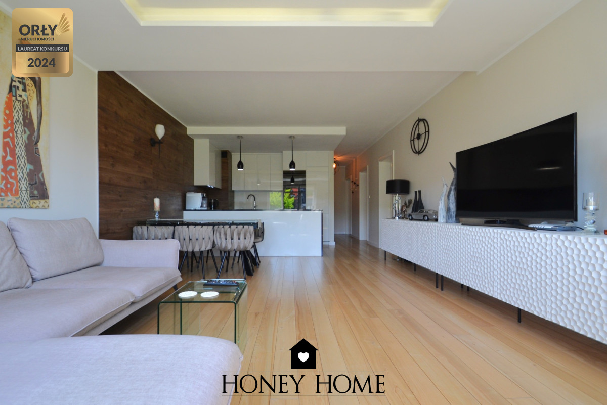 Mieszkanie o powierzchni ponad 90 m² znajduje się na 1. piętrze budynku i zostało wykończone z dbałością o detale.