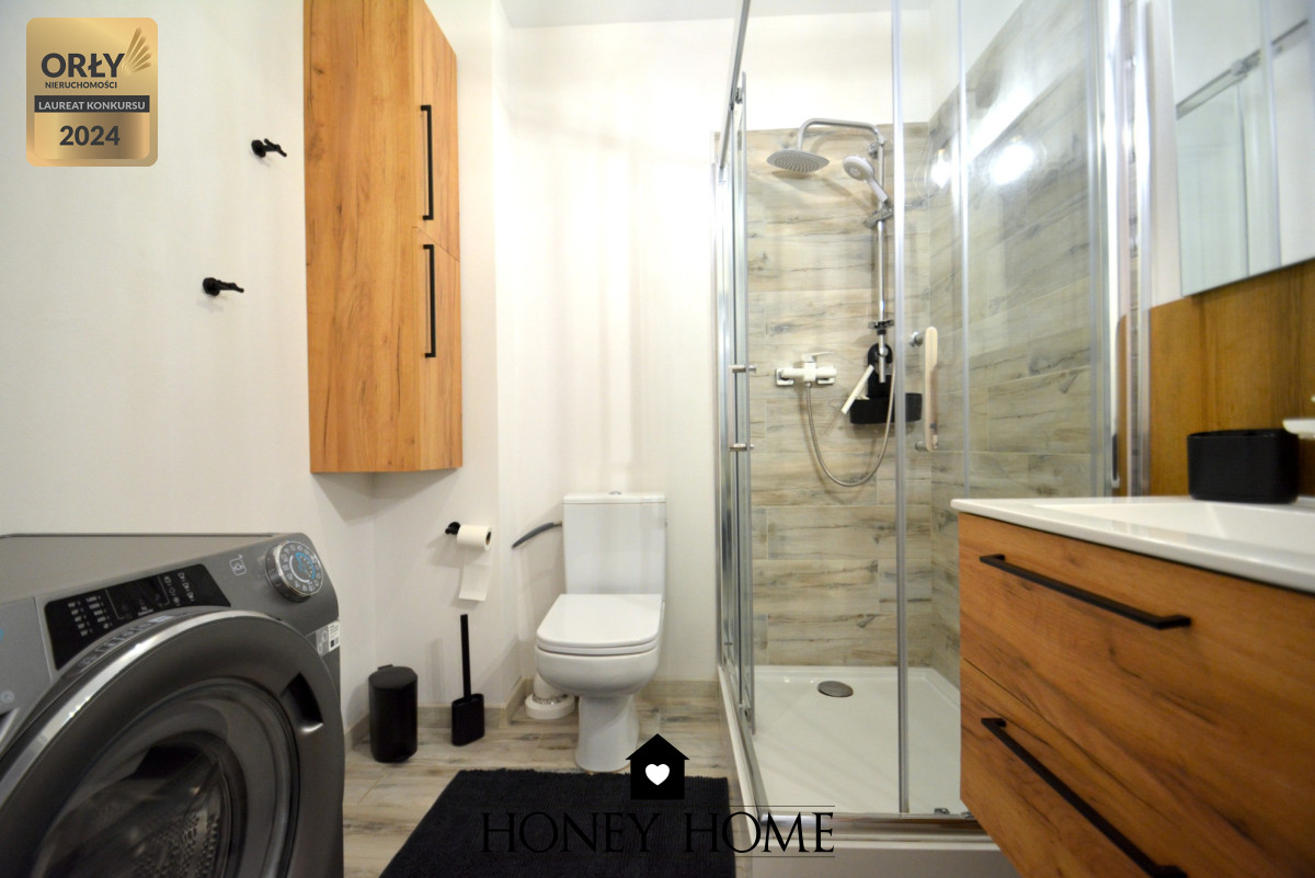 - łazienka z prysznicem i pralką.
