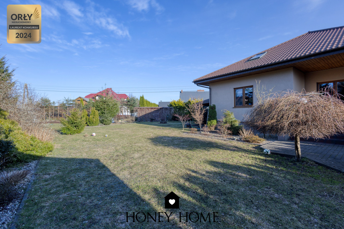 Ogród stanowi jeden z największych atutów nieruchomości. Jest to przestrzeń w pełni urządzona przez pasjonata ogrodnictwa, charakteryzująca się bogatym drzewostanem oraz licznymi krzewami ozdobnymi. Na terenie ogrodu znajdują się: