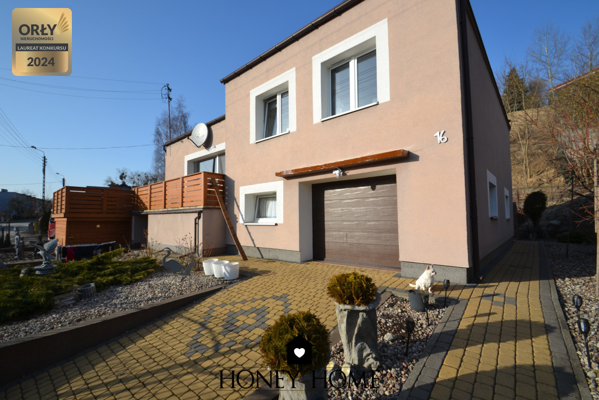 Dodatkowo w bryle budynku znajduje się garaż wykończony płytkami, a całość dopełnia zadbana, solidna elewacja. Na posesji znajduje się również ogród, który daje możliwość stworzenia pięknej przestrzeni rekreacyjnej.